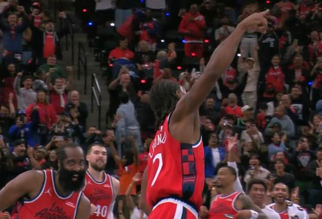 全場(chǎng)比賽,倫納德得到了34分5籃板5助攻6搶斷,哈登得到了24分5籃板14助攻2搶斷。