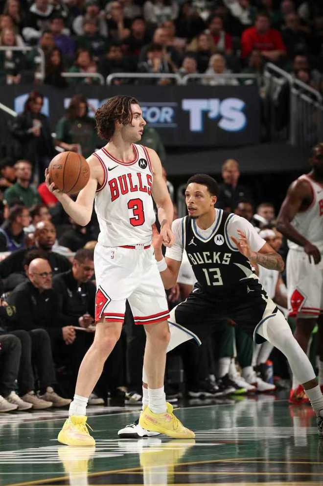 雄鹿上一次客場100-128慘負猛龍,公牛上一場主場113-111險勝76人。本場雄鹿缺少小波特與普林斯,公牛缺少科林斯與懷特。首節開局雄鹿1-8落后,格林三分命中,公牛連續得分擴大7分優勢,羅林斯三分開火追到差4分。赫爾特三分回敬,雄鹿之后被拉開16-23落后差距,雄鹿一波7-2攻勢迫近比分,首節結束雄鹿23-25落后公牛。首節雙方均沒有球員得分上雙,公牛三分13中3,雄鹿21中8,其中三分11中4,字母哥6中2得到7分2失誤。